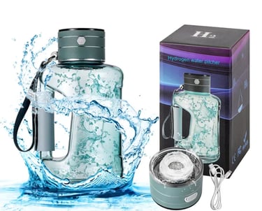 Botol Air Hidrogen Portabel Baru 1,5L Generator Air Hidrogen dengan Teknologi SPE/PEM Konsentrasi Kaya Hidrogen Murni 2500PB Bahan berkualitas tinggi: Botol hydrogen ini dilengkapi membran tetanium dari AS, memastikan produksi hidrogen dan daya tahan berkualitas tinggi. Bahan Aman ecofrenly,terbuat dari Polyethylene Terephthalate Abs BPA Free, sehingga ringan dan mudah dibawa.
